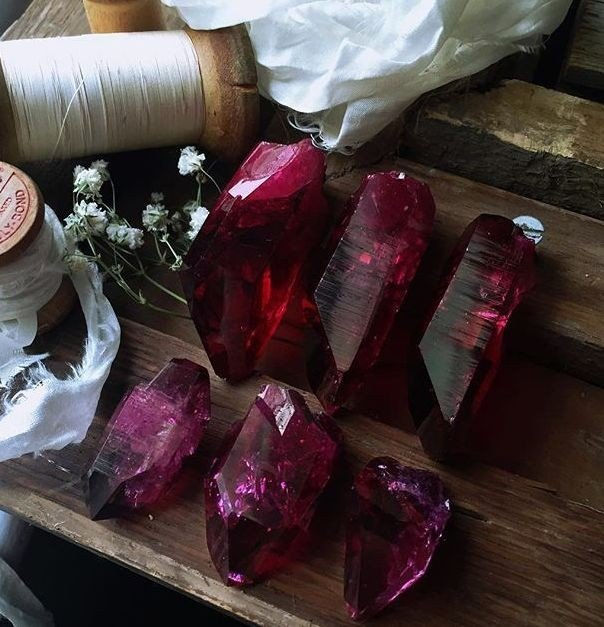 Il rubino è un corindone rosso, un minerale di ossido di alluminio a inclusioni di cromo, responsabile del suo colore acceso. Il nome deriva dalla parola latina rubeus, che significa appunto rosso. Ha una forza di guarigione e di energie magiche eccellenti ed è più potente con la luna piena. È estremamente efficace nei casi di persone autolesioniste, con problemi erotici o con traumi di natura sessuale.